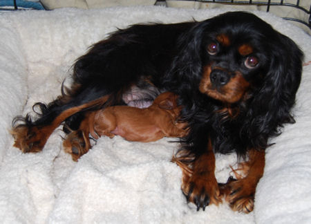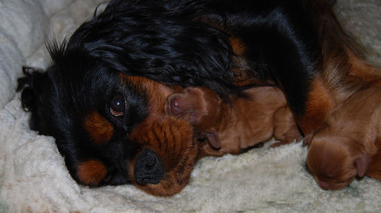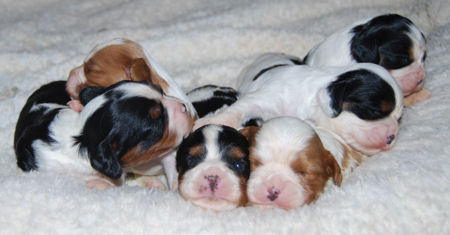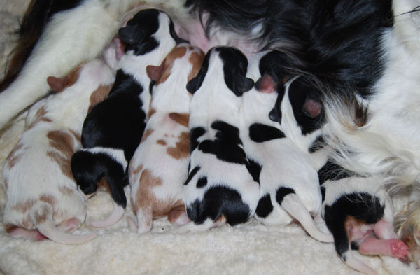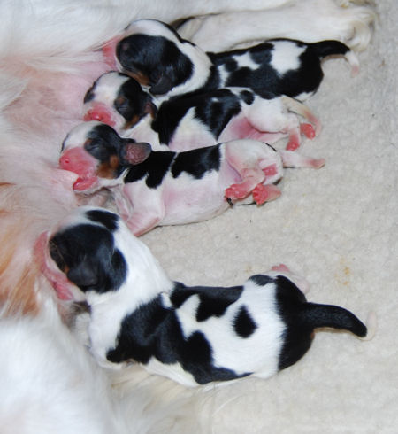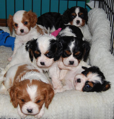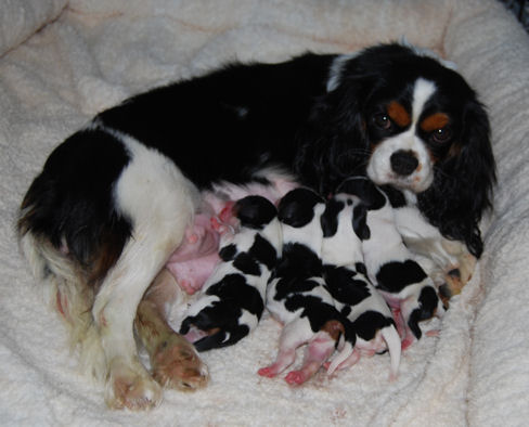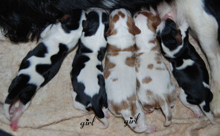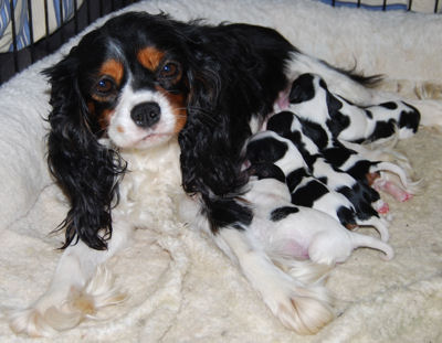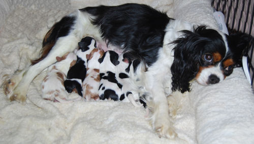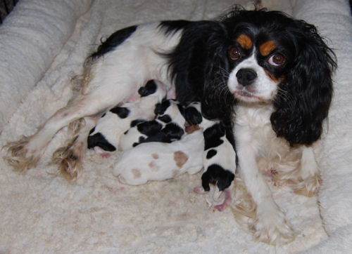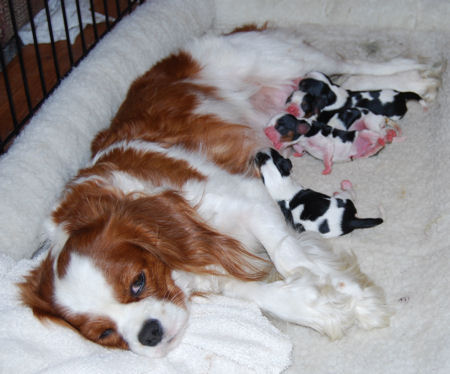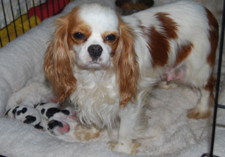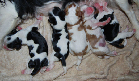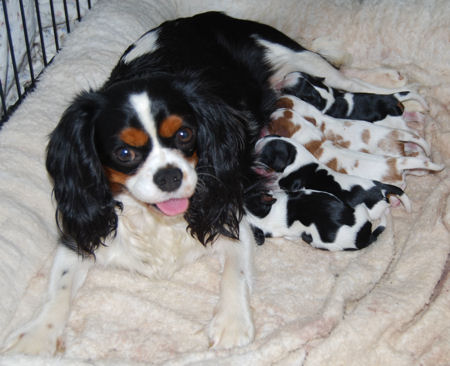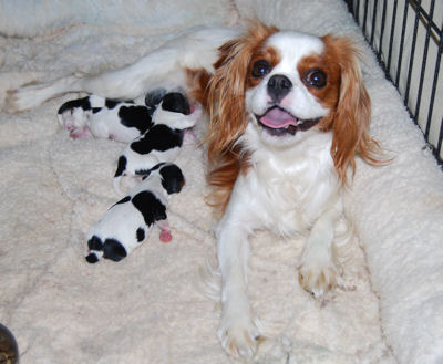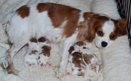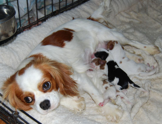 Two blenheim girls and two blenheim boys. The pups are adorable and Pippie is a great Mom.