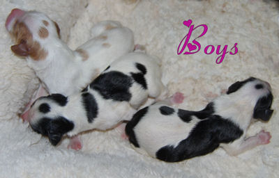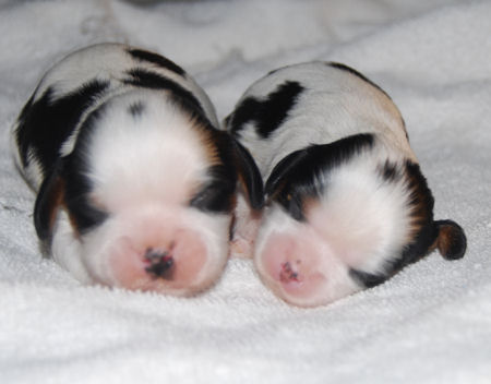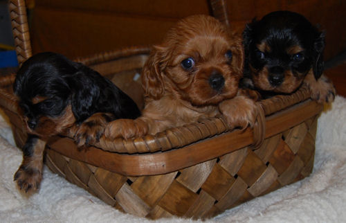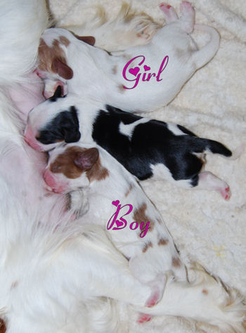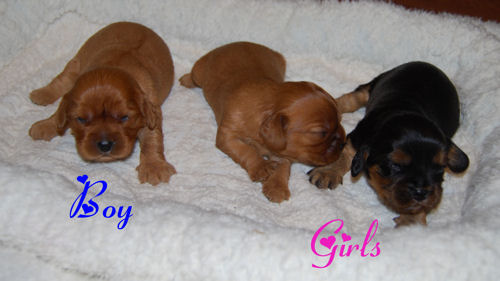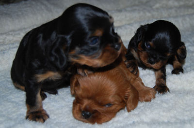 One blenheim boy, one blenheim girl and one tri boy.