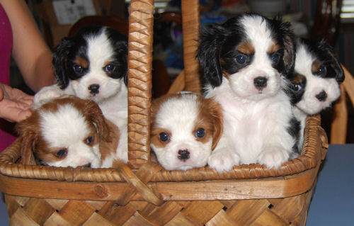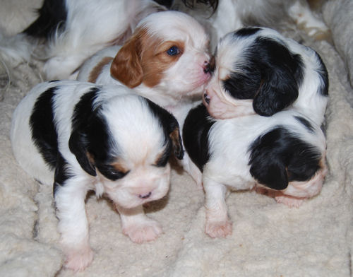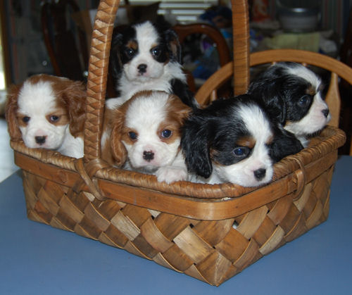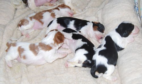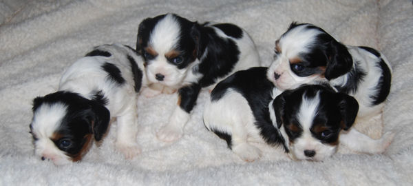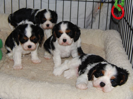 Two tri boys, one tri girl, one blenheim girl and one blenheim boy. They are just