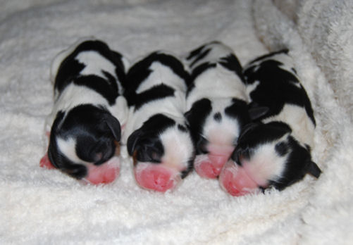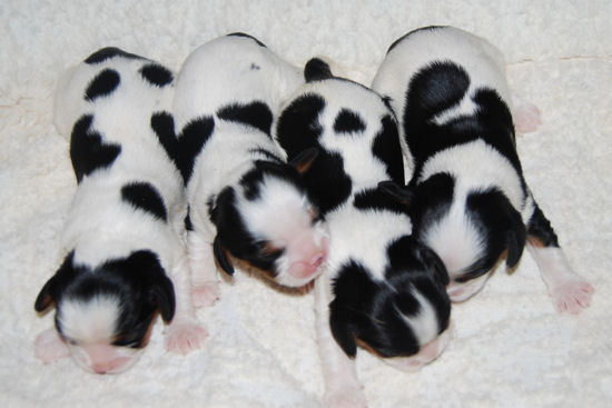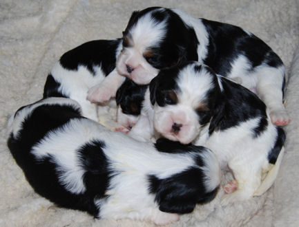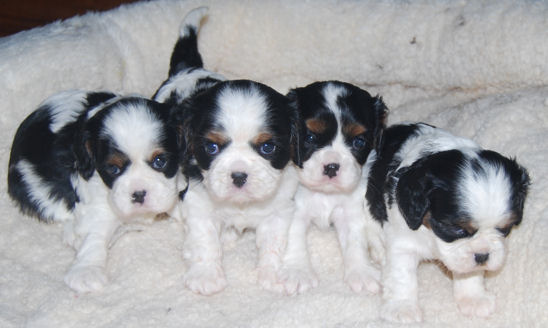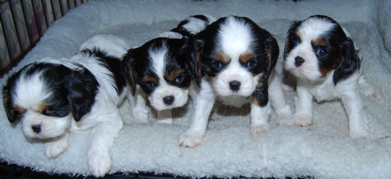 Two tri boys, one blenheim boy and one tri female.