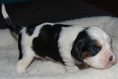 One tri male, one tri female and one blenheim male. They are just adorable and Pippie is a wonderful doting Mom. Congrats to Tracy, Sally & Lee Anne.
