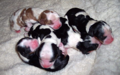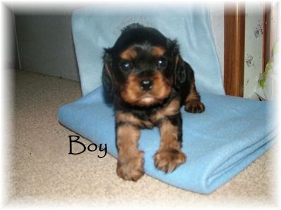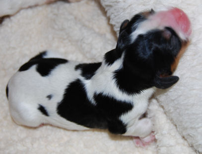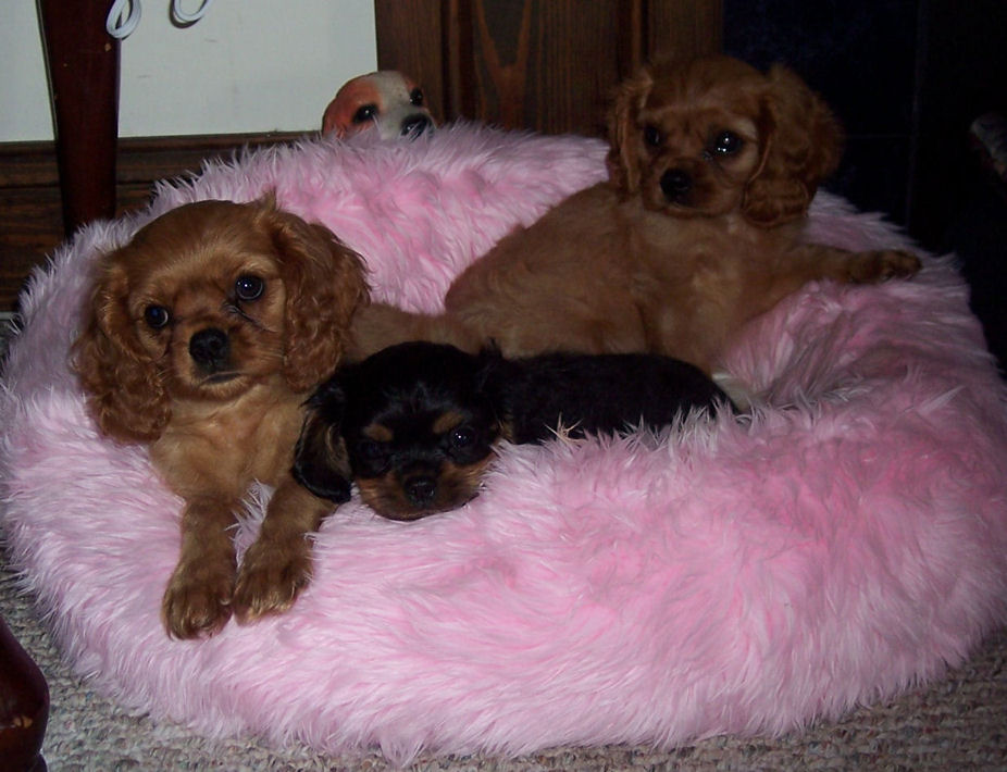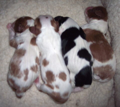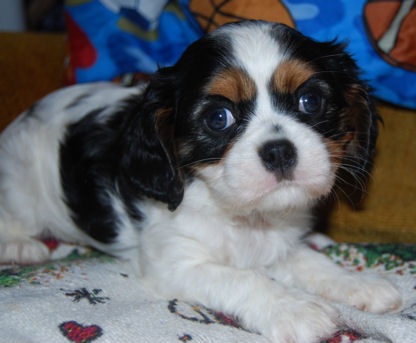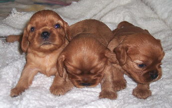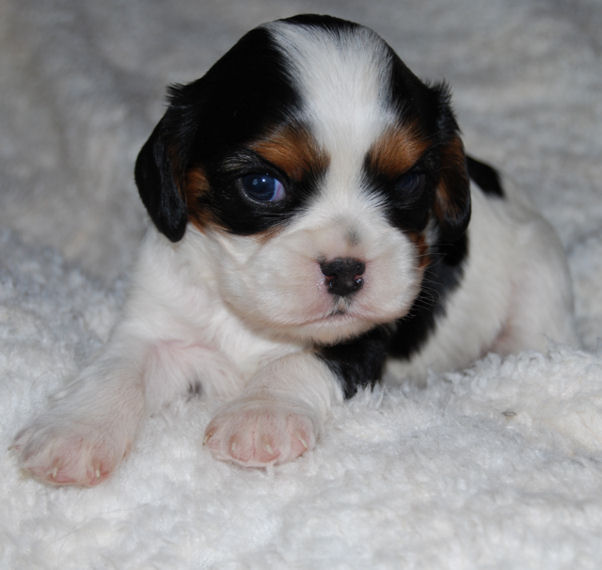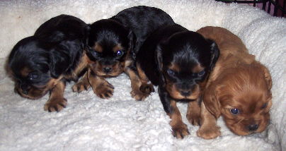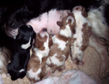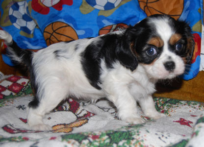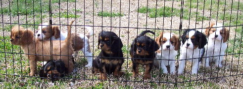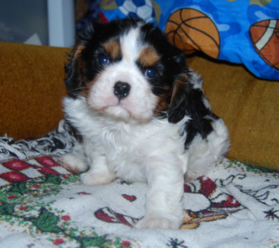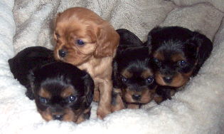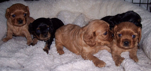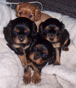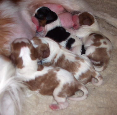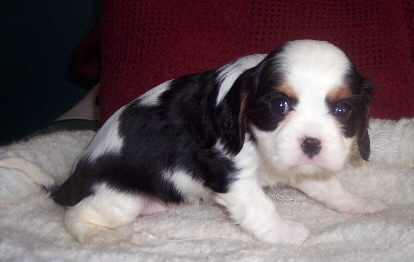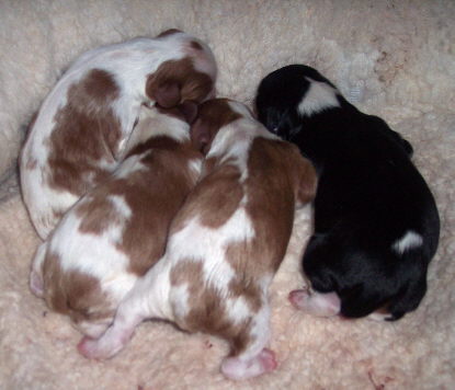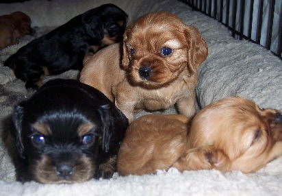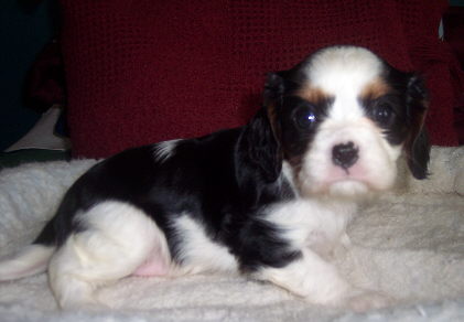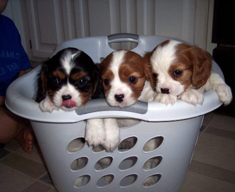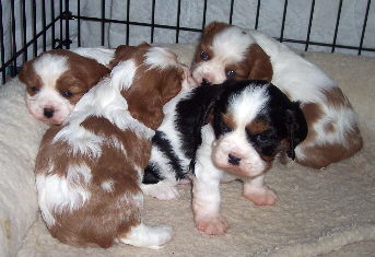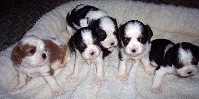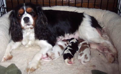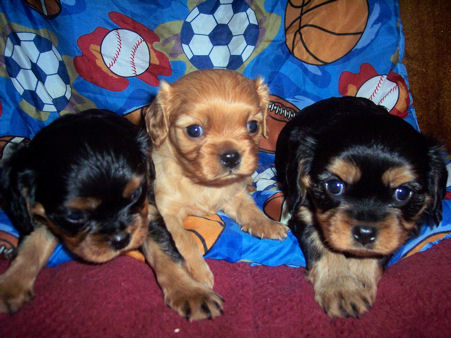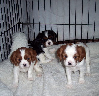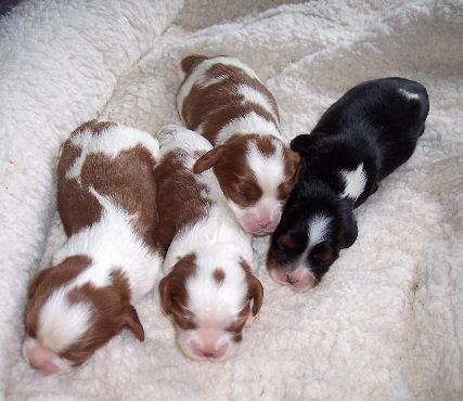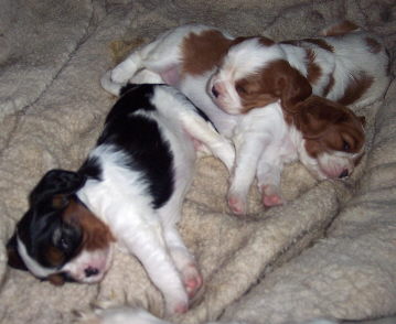 Carly & Cody's adorable puppies. Two blenheim girls and one tri boy.