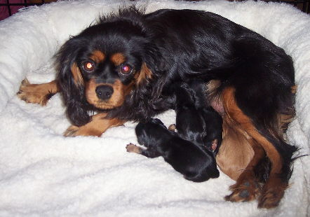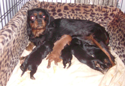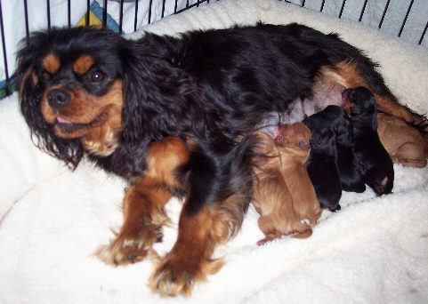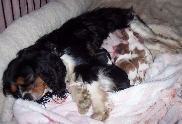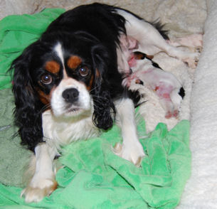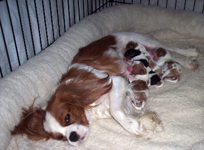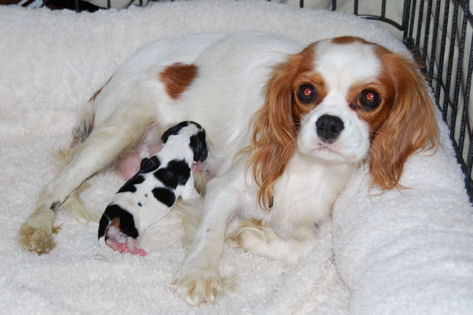 Our precious Maya and Toby had their puppies. Four adorable puppies in all: two blenheim females, one tri female and one blenheim male.