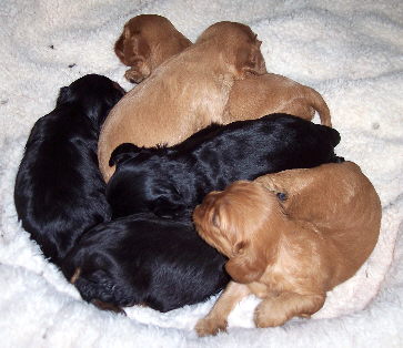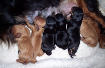 Jilly had her puppies, six gorgeous puppies. Two ruby females, two black and tan females, one ruby male and one black and tan male. Congrats: Kathy, Sheri, Megan, Beth, Lynsie and Sherrill!