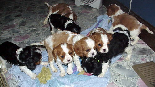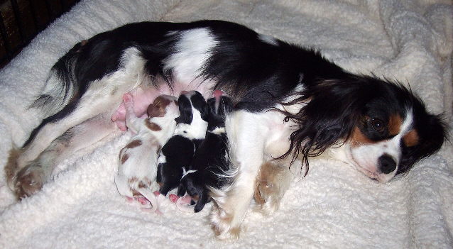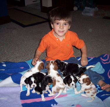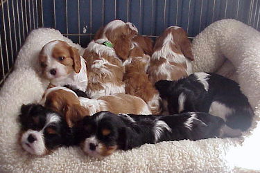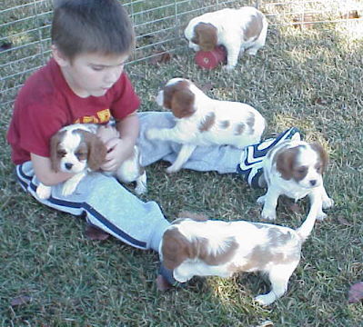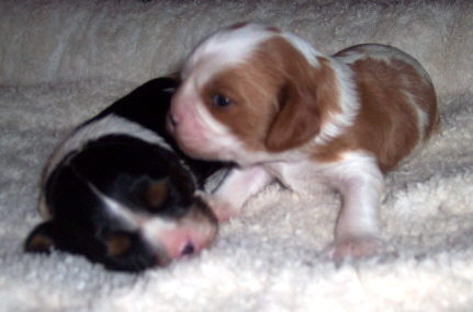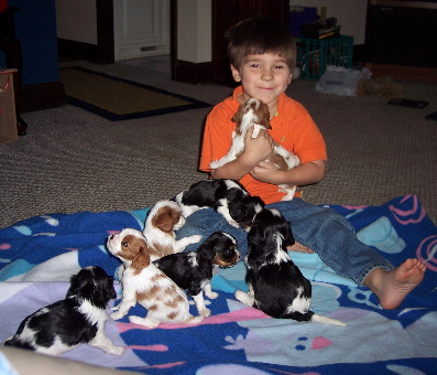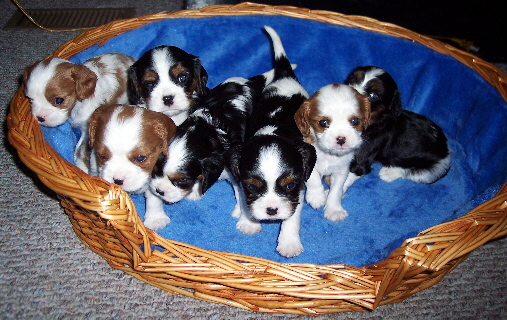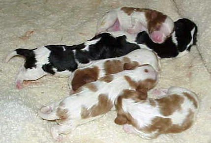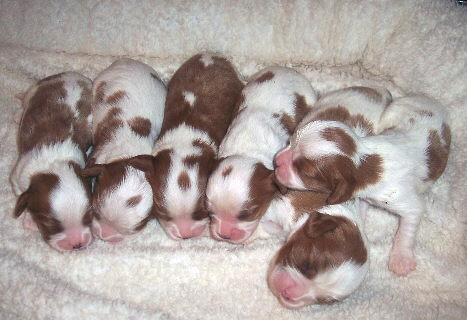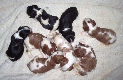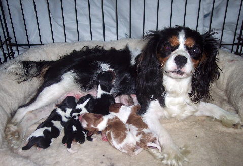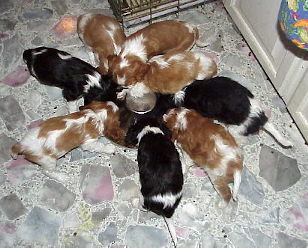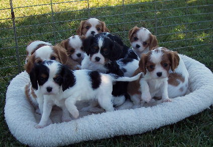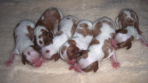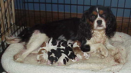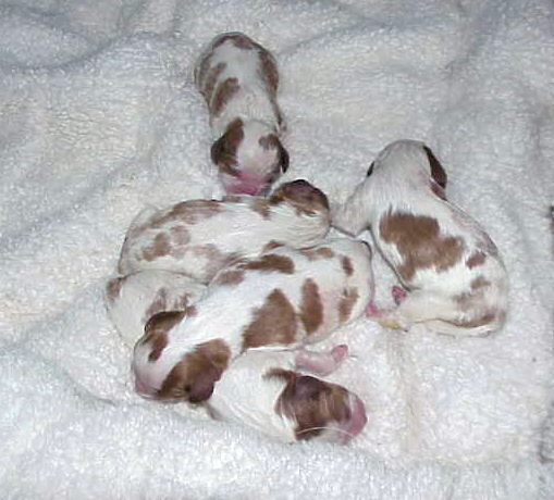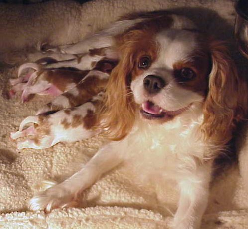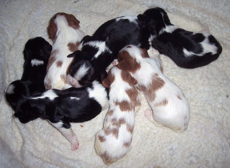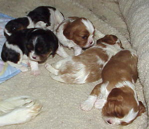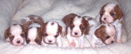 Zoie's litter: four blenheim girls and 2 blenheim boys. All four girls have the "Queens Thumbprint". Cody is the sire. All SOLD! Congrats to: Heidi, Rachel, Meg, Allison, Kelly,(second time buyer) and Holly!