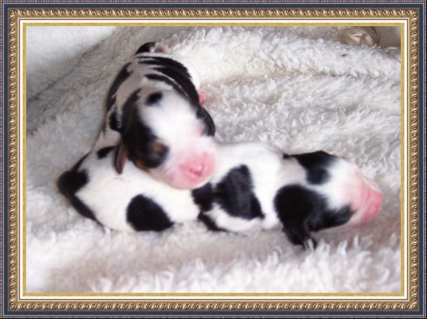Katie had three darling females and 1 handsome male. They are all sold. Congrats to Courtney, Connie, Tara and myself! (I kept the cutie with the teardrop thumbprint Maya)
